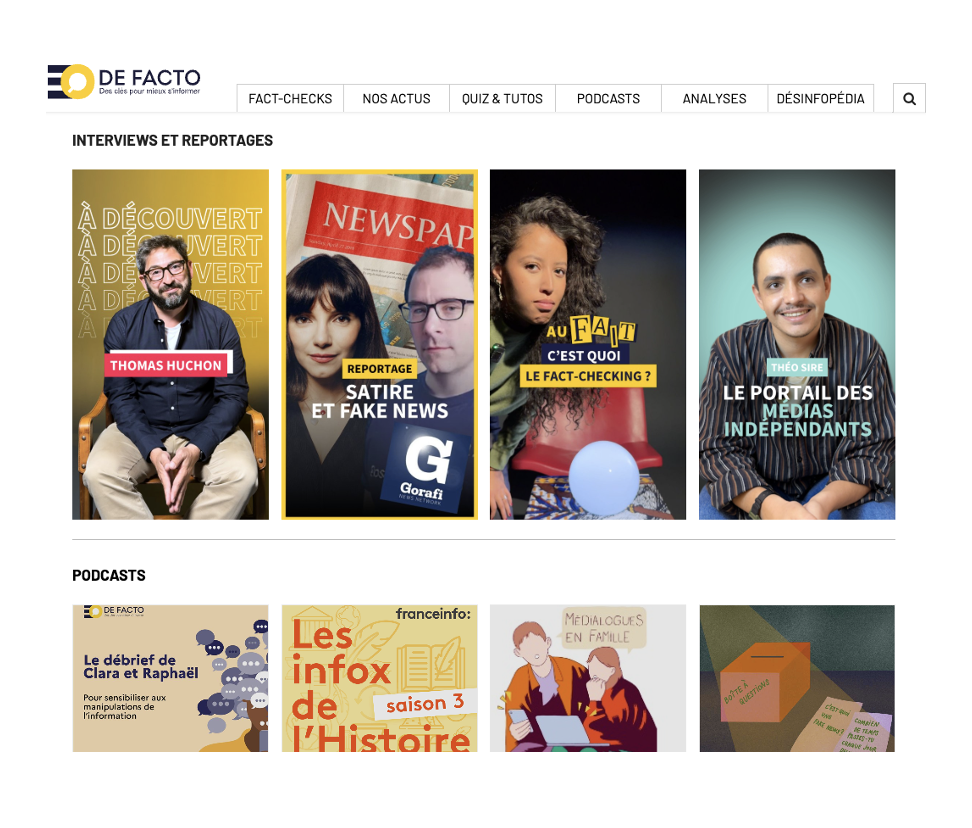 Through a wide range of content and key data, the DE FACTO platform enables everyone to better understand the current challenges of disinformation by offering multiple formats: