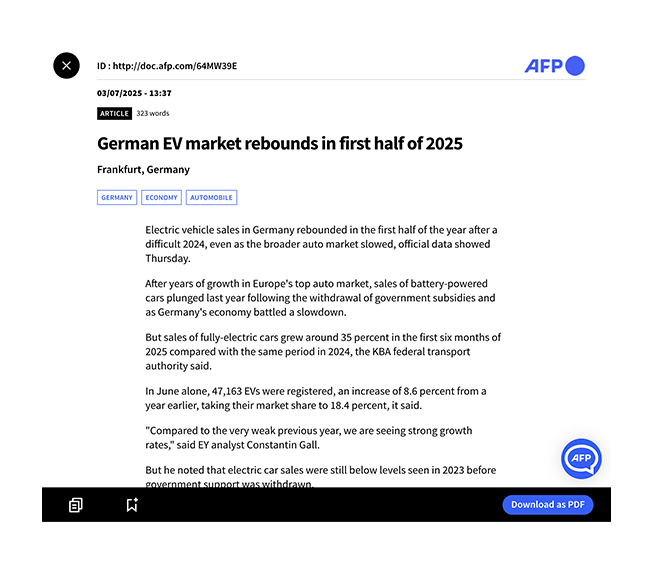 - Always on: feed your channels continuously with AFP's multimedia news.